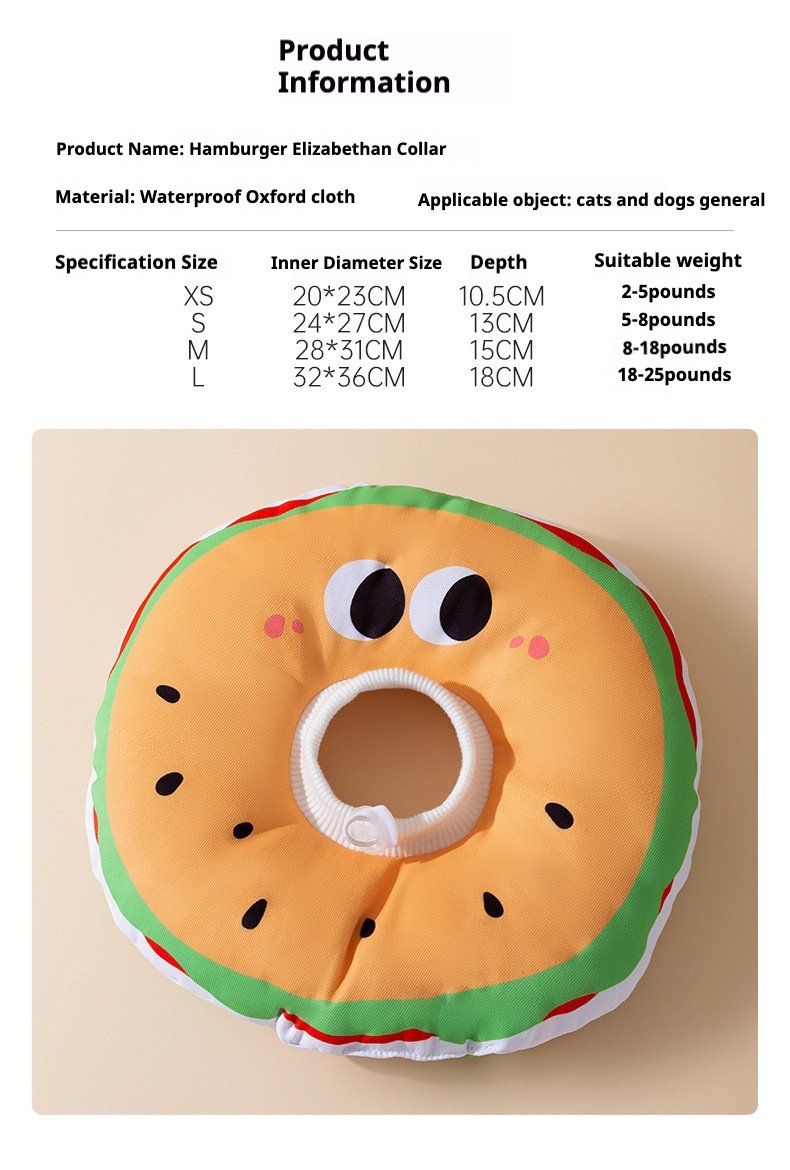 Cartoon Hamburger Pattern Cat Elizabethan Collar, Adjustable Post-Sterilization Anti-Licking Recovery Cone for Cats