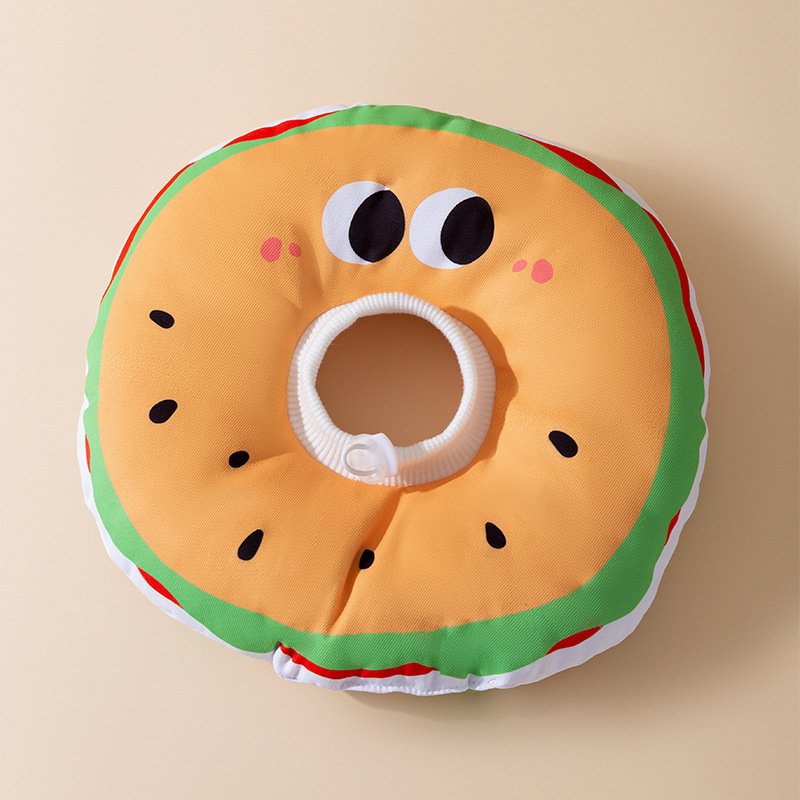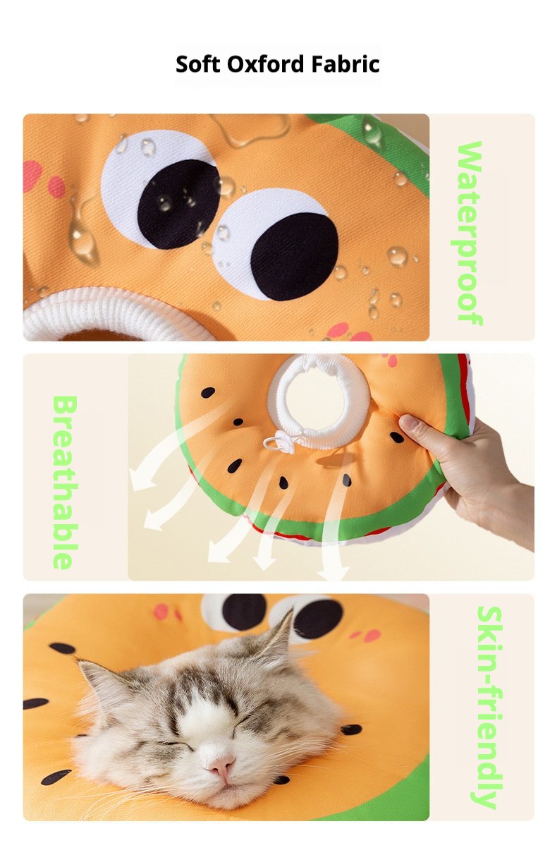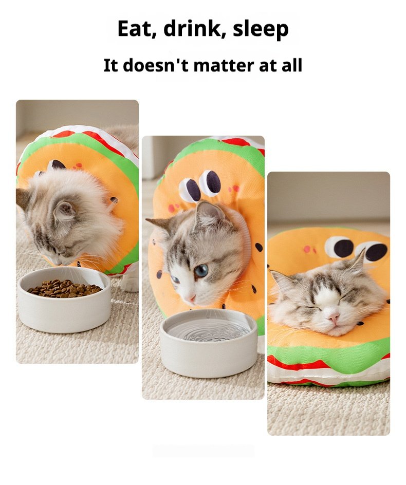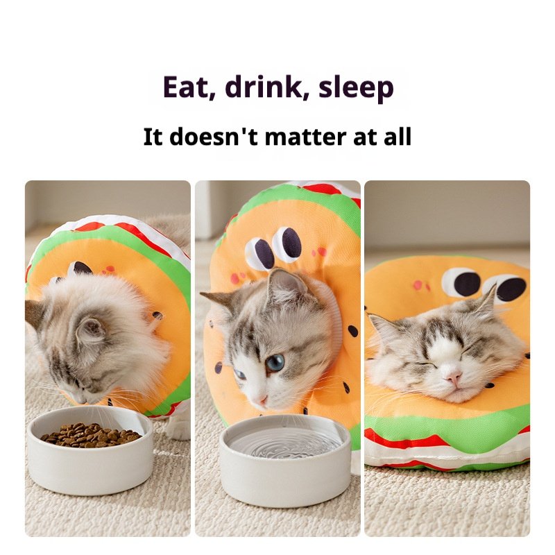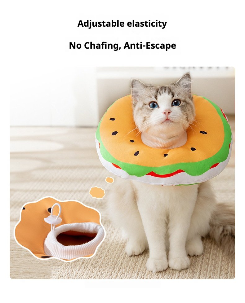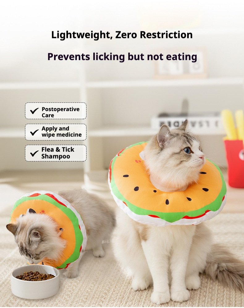 Cartoon Hamburger Pattern Cat Elizabethan Collar, Adjustable Post-Sterilization Anti-Licking Recovery Cone for Cats