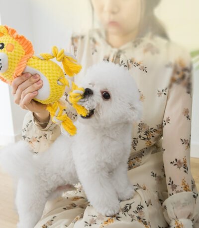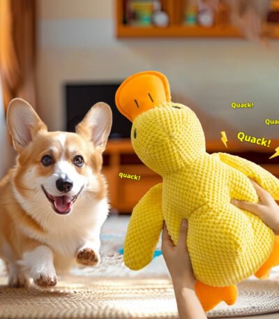 Pet Dog Chew Toys, Boredom Relief Squeaky Yellow Duck Plush Toy, Self-Play Interactive Toys for Small & Large Dogs