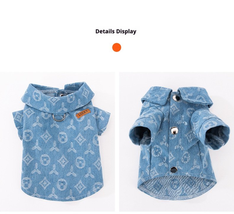 Autumn Pet Denim Jacket with Traction Function, Apparel for Small-Sized Cats & Dogs