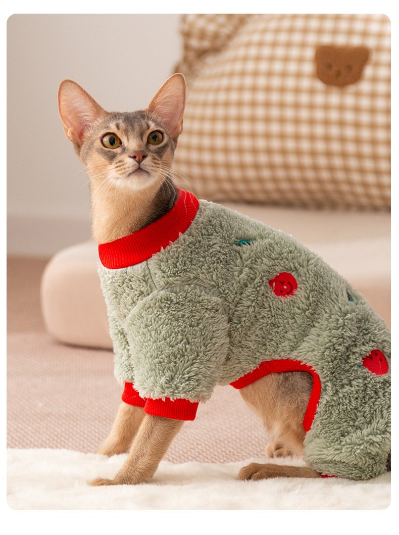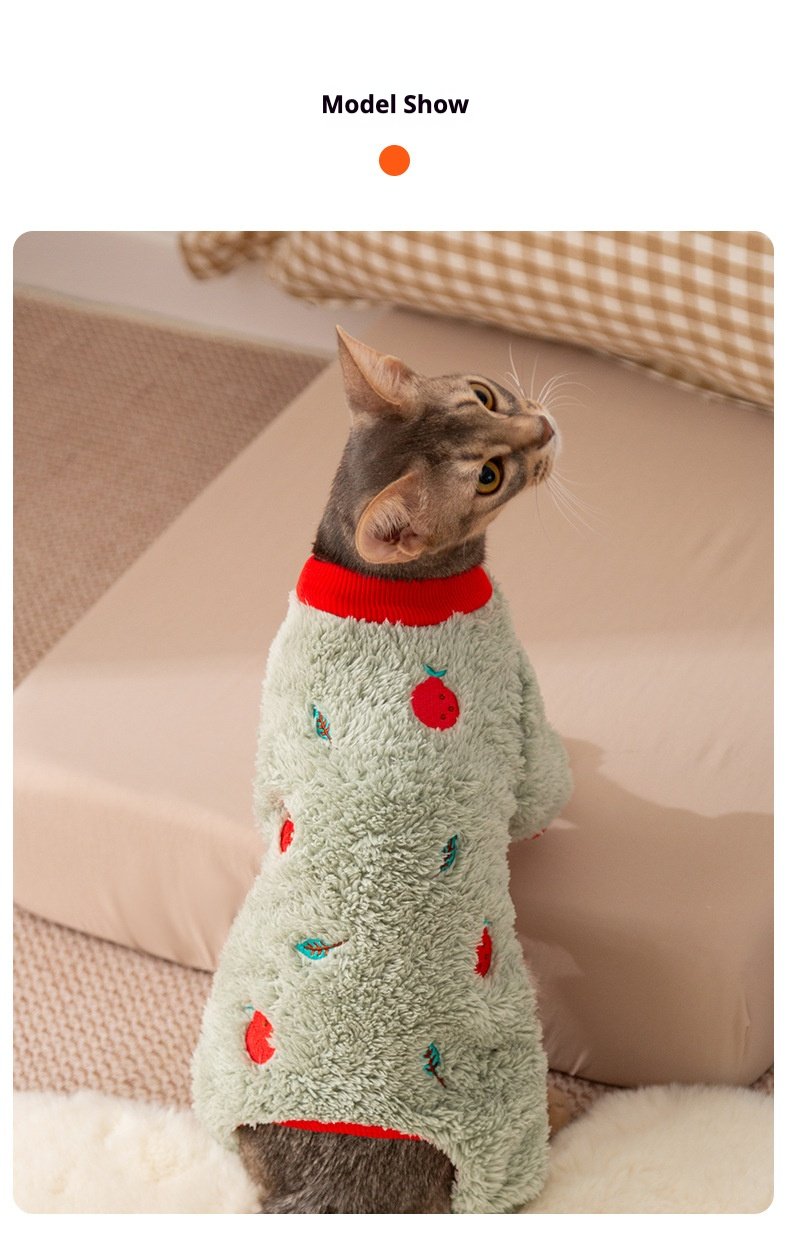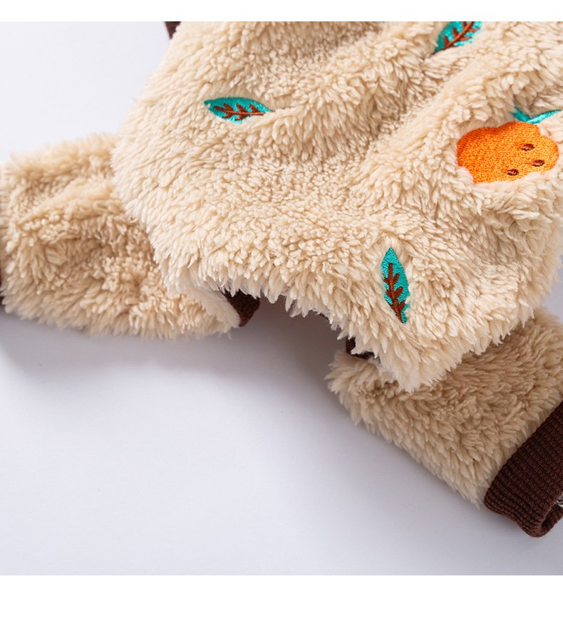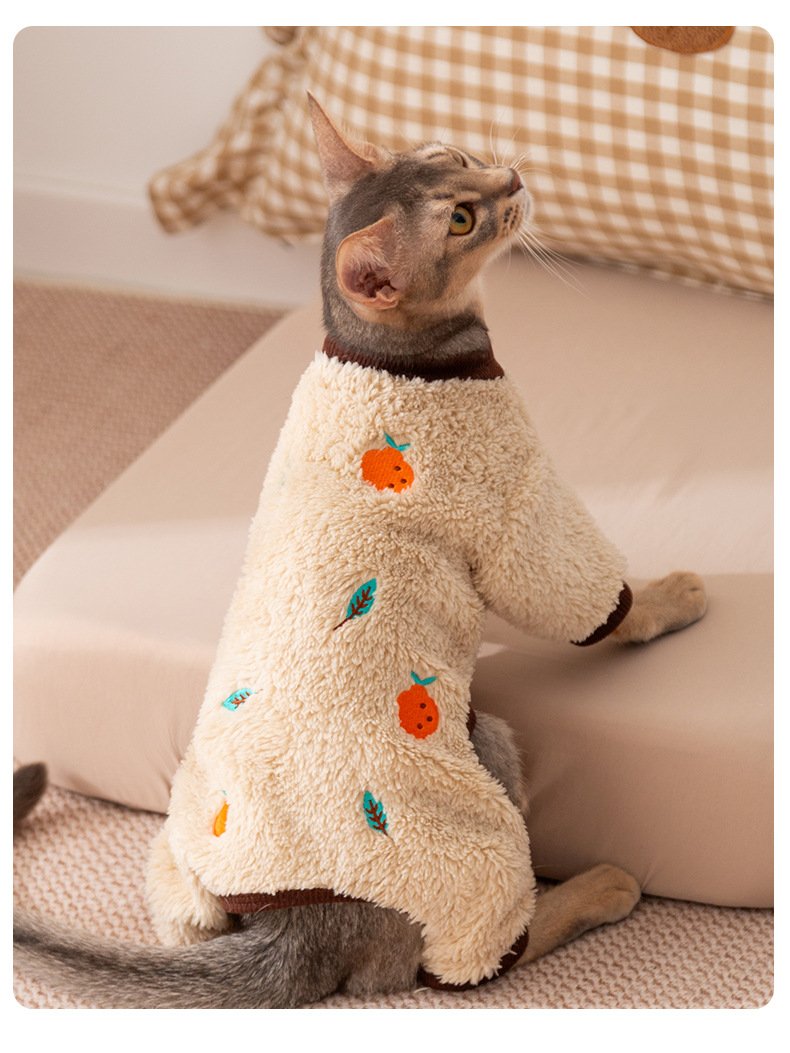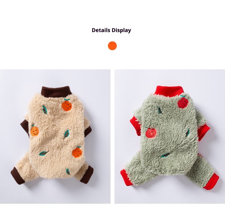 Autumn & Winter Cat Fleece Jumpsuit with Cute Cartoon Fruit Full Embroidery for Kittens & Puppies