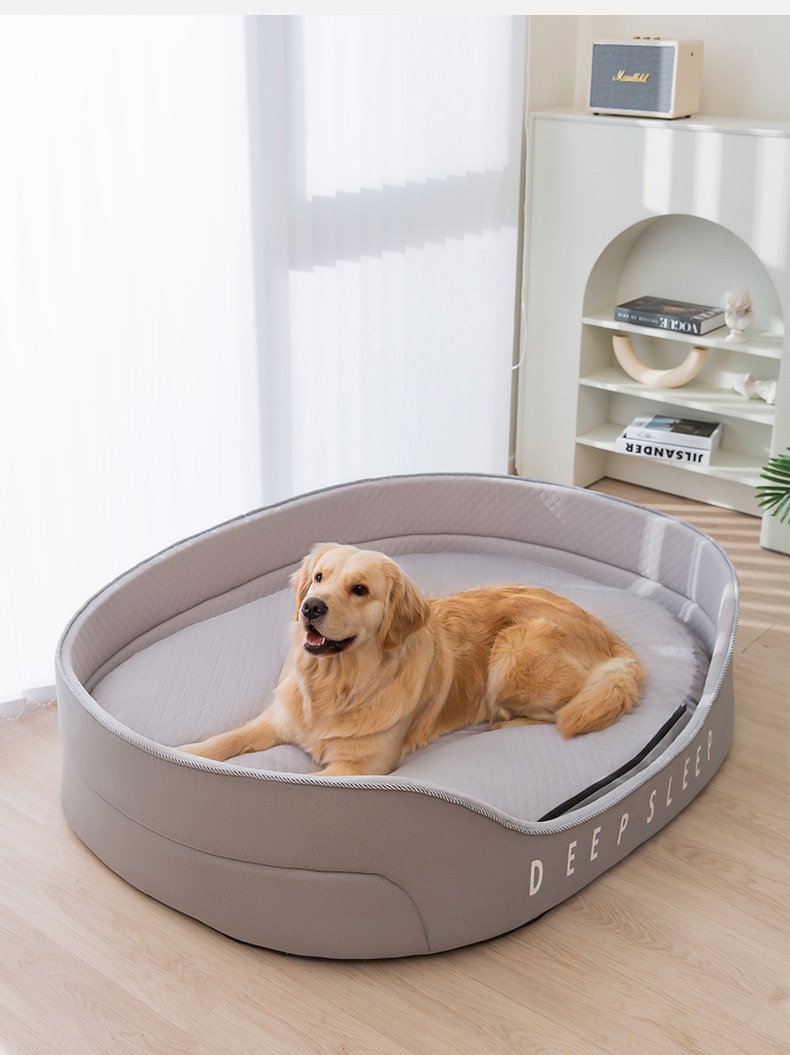 Dog Bed with High-Density Sponge for Deep Sleep, All-Season Cooling & Warm Pet Bed Mat for Medium & Large Dogs