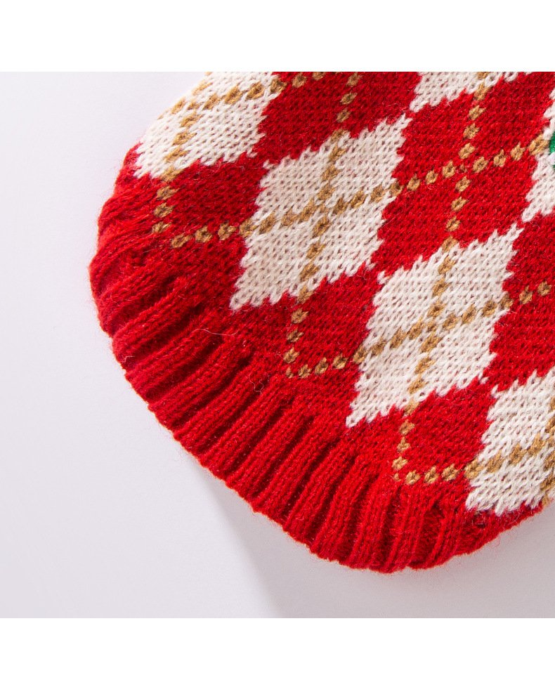 Festive Dog Sweater with Rhombus Embroidery & Cherry Pattern for Halloween & Christmas, Pet Apparel for Small Dog Breeds