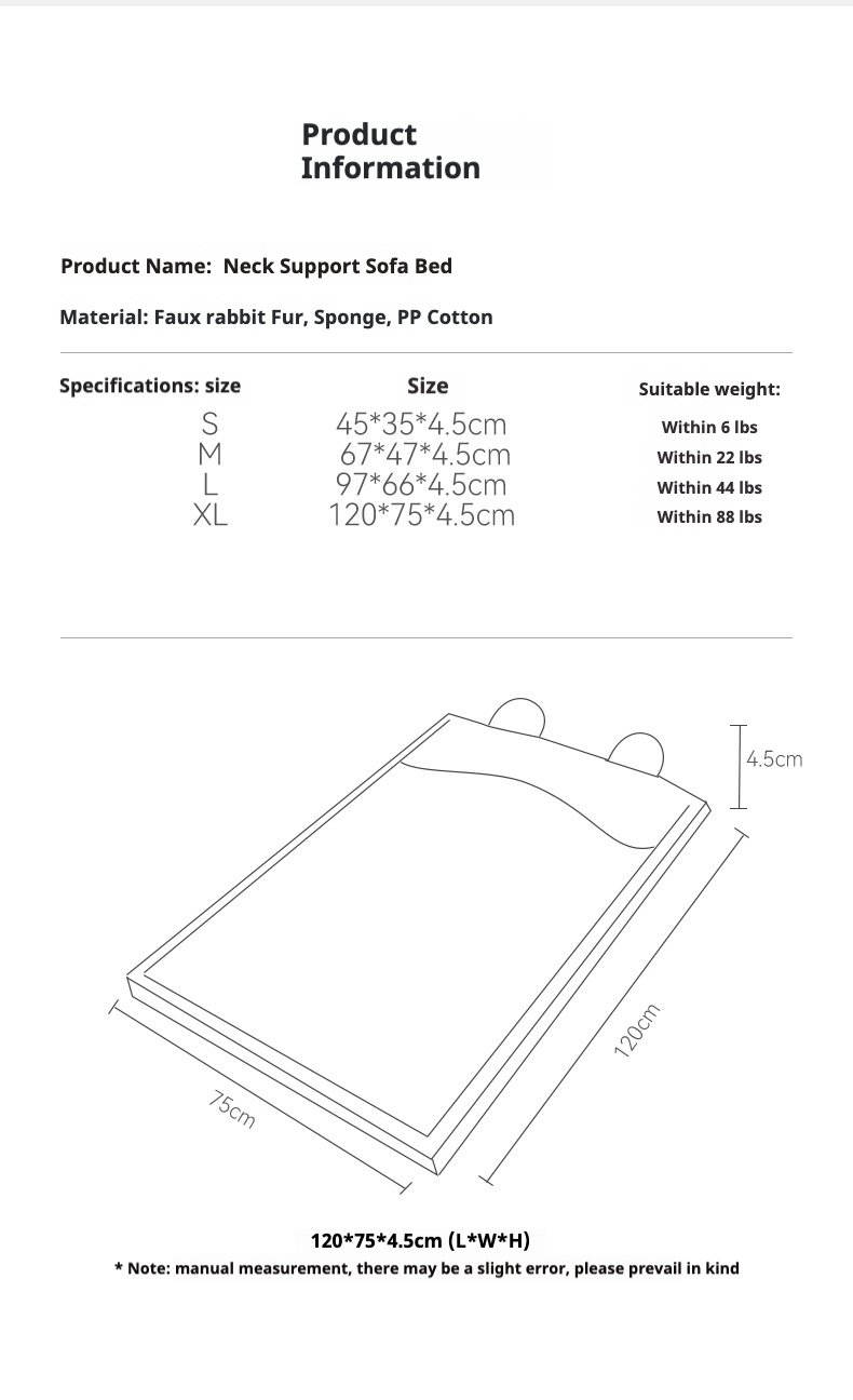 Neck Support Dog Sofa Bed, Washable All-Season Pet Bed Mat for Medium & Large Dogs and Cats