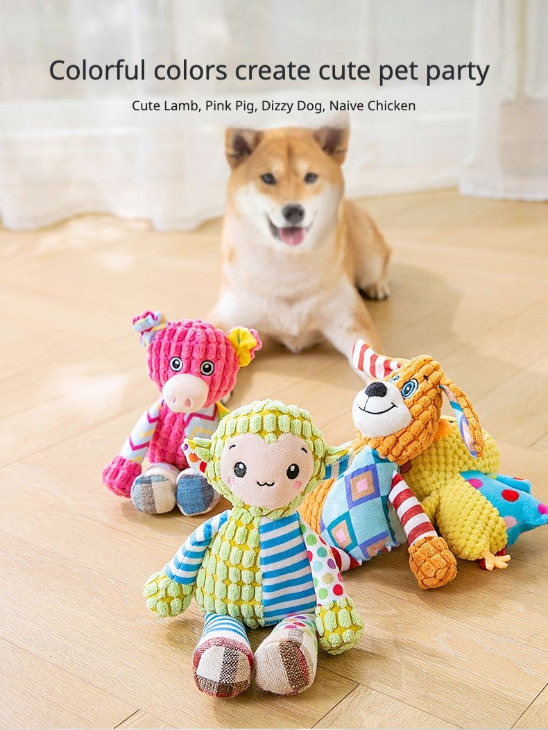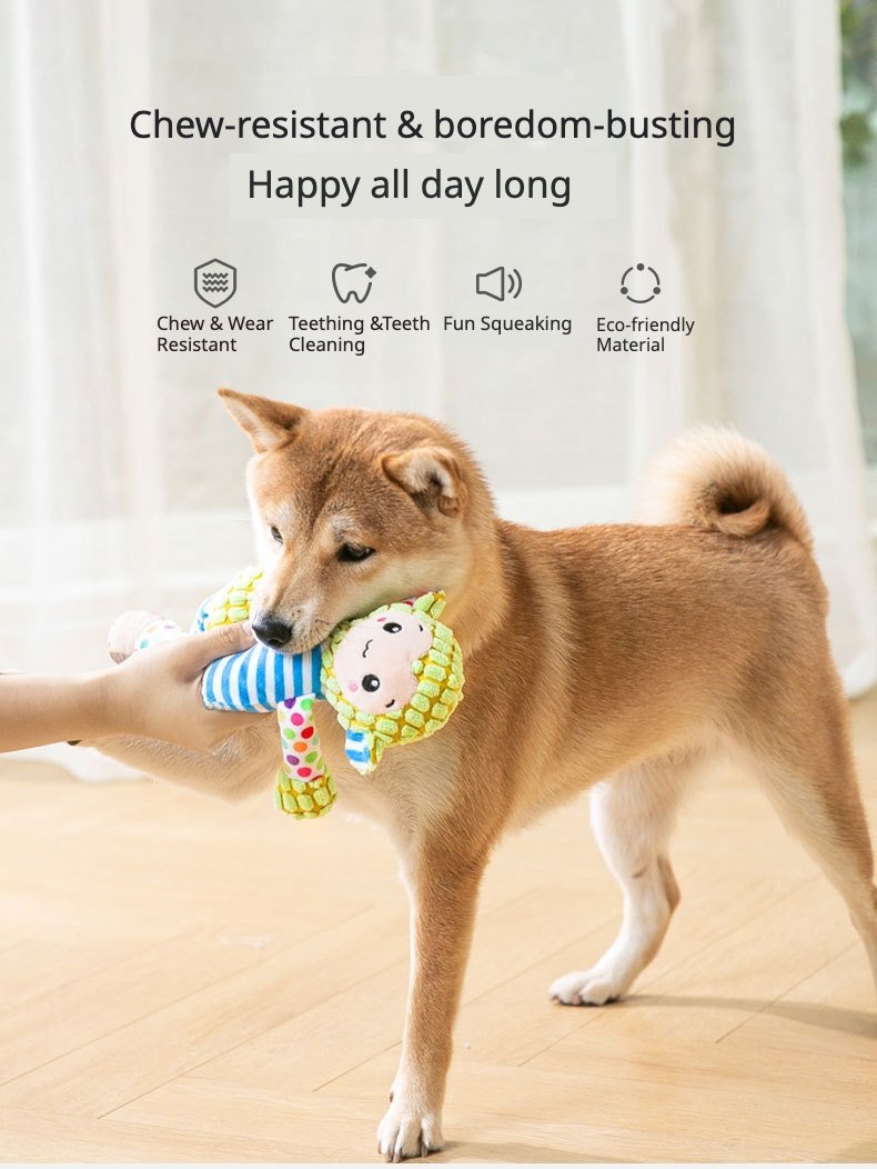 Patchwork Plush Dog Chew Toy, Training & Teeth-Cleaning Toy for Small & Medium Dogs and Cats