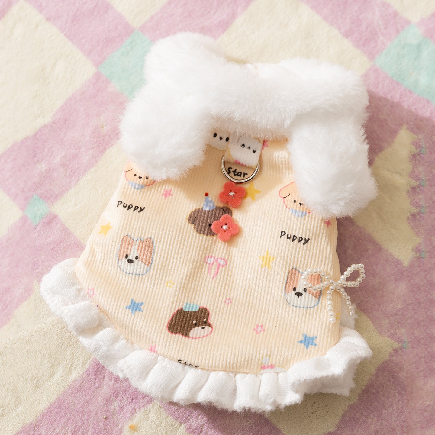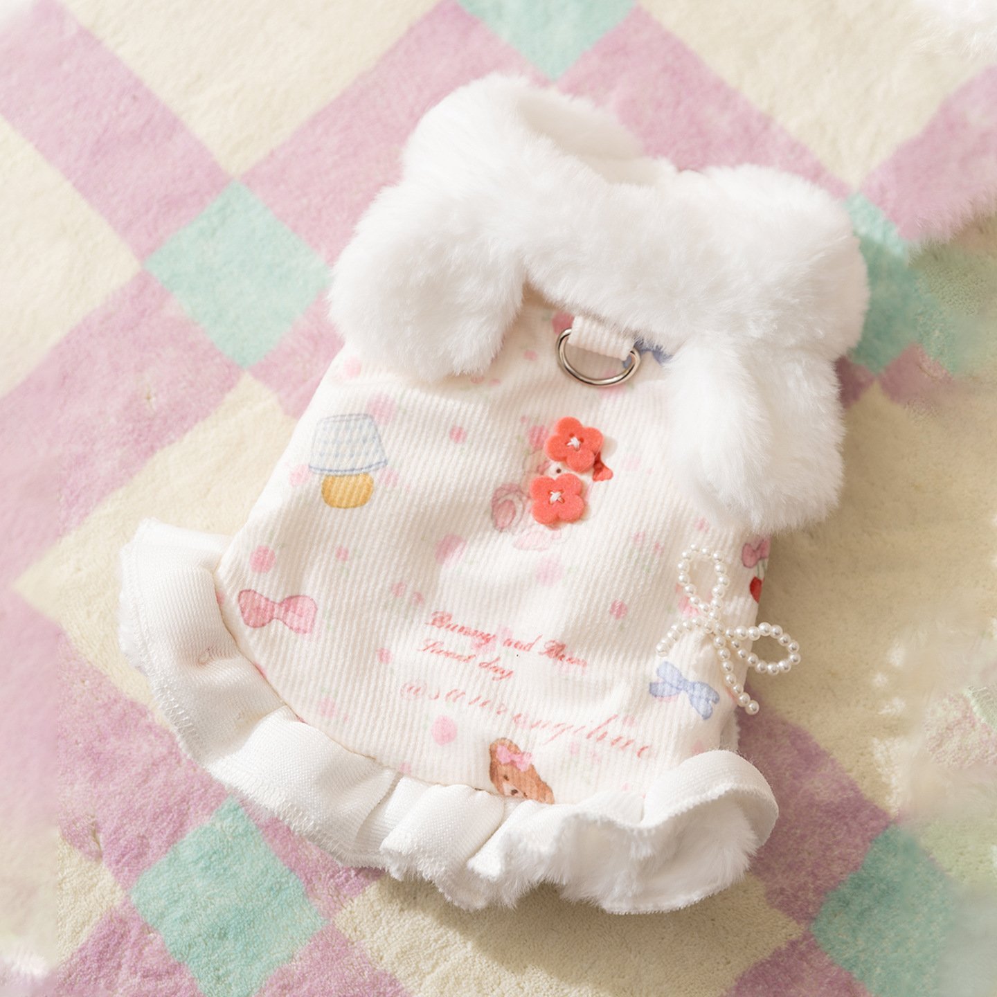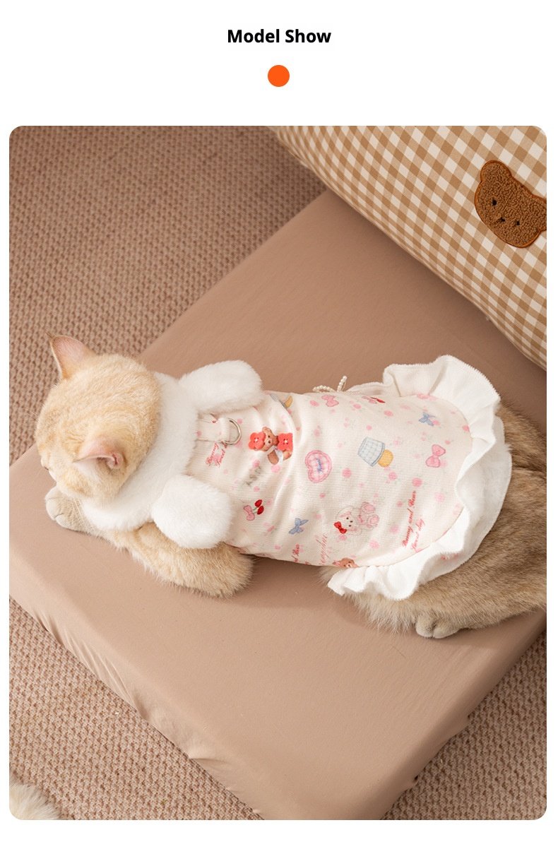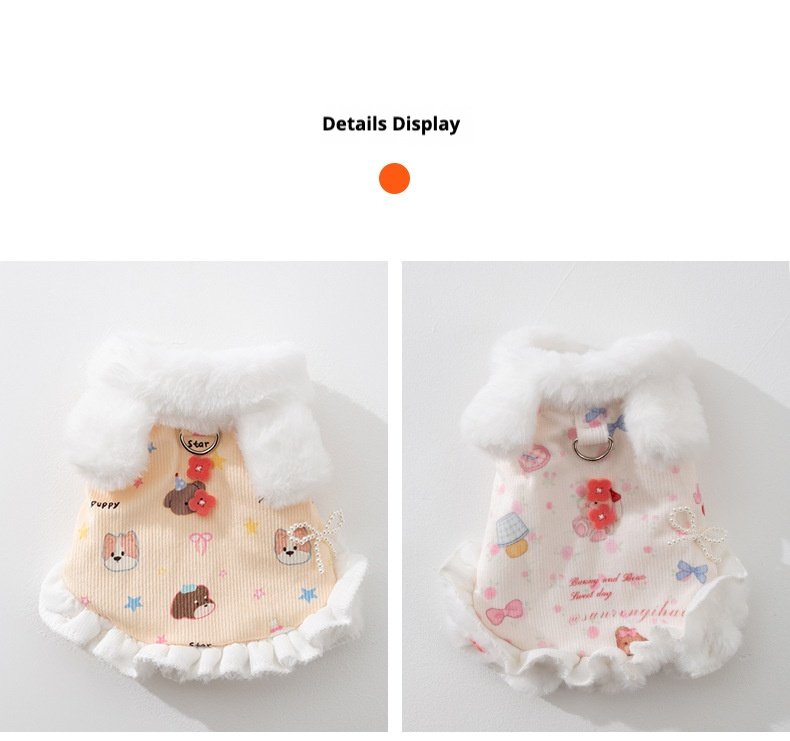 Princess-Style Rabbit Ear Harness Dress, Thickened Warm Pet Winter Apparel