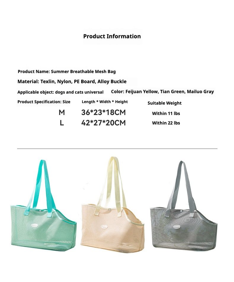 Summer Minimalist Mesh Pet Bag, Breathable Escape-Proof Single Shoulder Bag for Small Dogs & Cats, Lightweight Outdoor Travel Pet Supplies