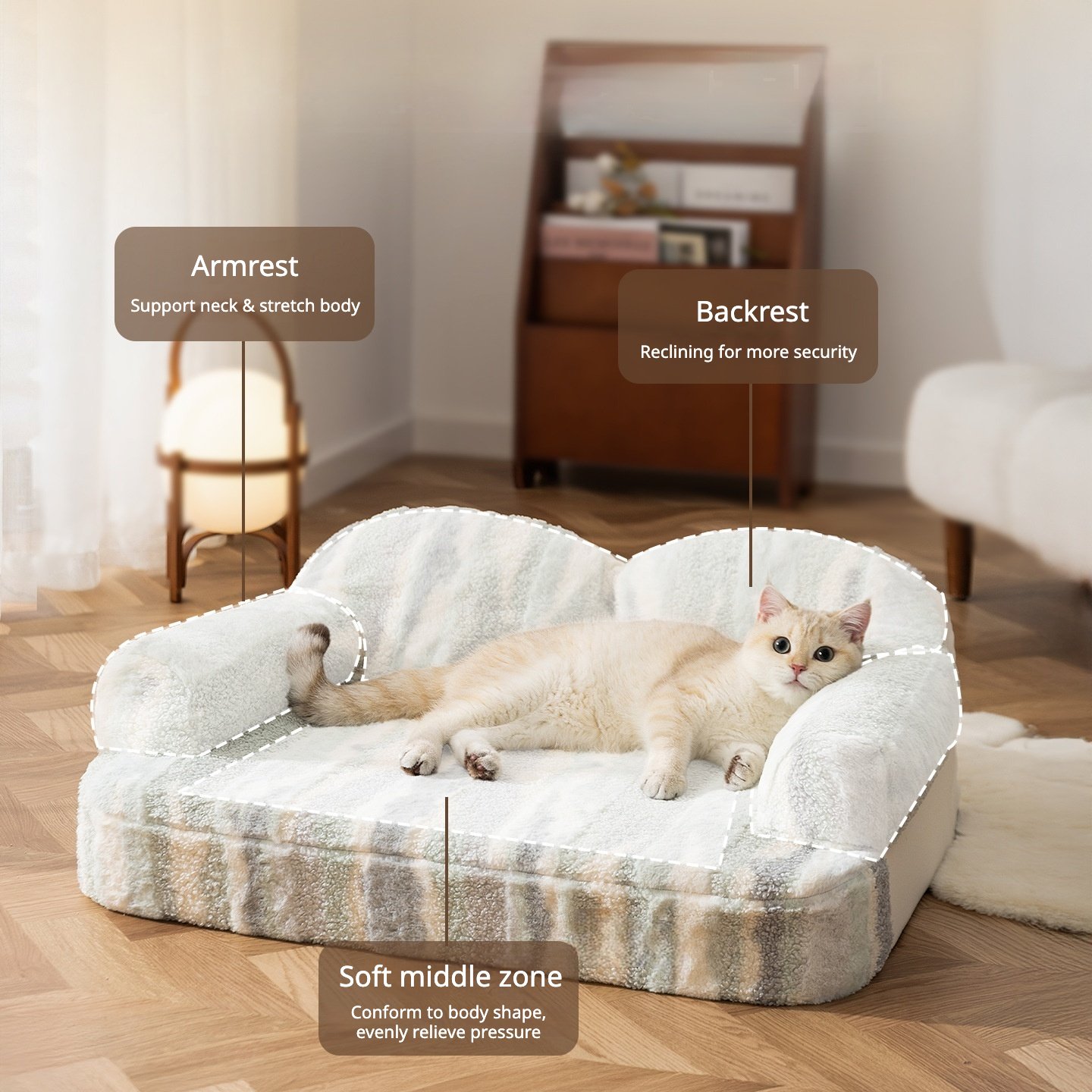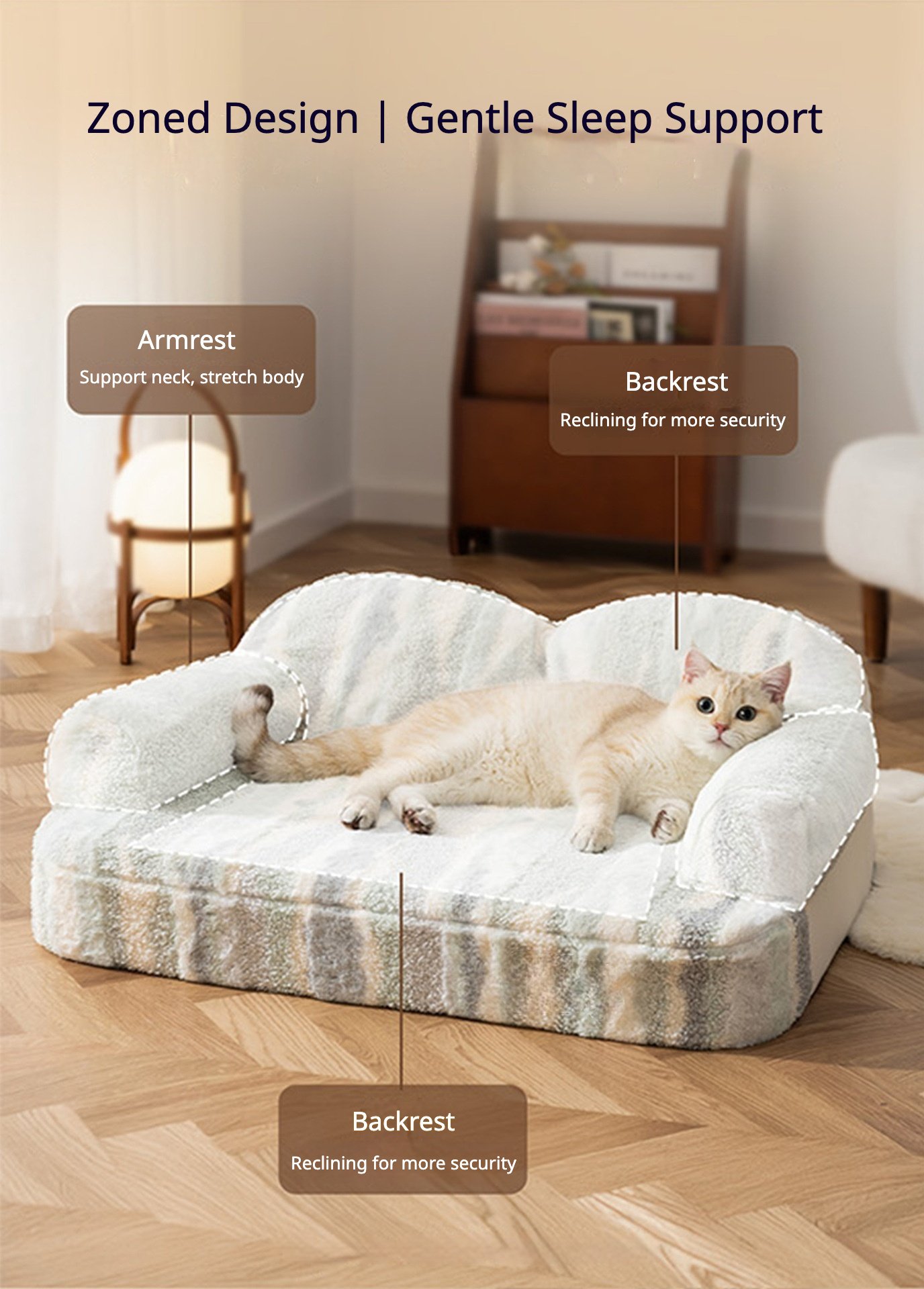 Thickened Warm Tiger-Striped Latex Pet Sofa Bed for Cats & Dogs, Winter Cat Nest with Latex Mat for Sleeping